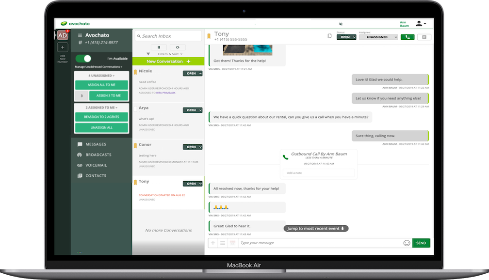 Blog › New Feature: User Availability New Feature: User Availability Avochato Product We're introducing a new feature to make it easier for large teams to manage the way that new conversations are assigned to different team members. You might already be familiar with the assignment roster, which you can always modify by going to Settings > Auto Assignment. Auto Assignment will automatically assign each new conversation to a member of the roster, cycling through each user as new conversations come in. For every member of your team who is part of the assignment roster, the same assignment toggle from the Settings menu will be accessible on their main Avochato dashboard. When that toggle is on, the user is available. This means that the user will receive new, incoming conversations. When the toggle is off, the user is unavailable and will not be assigned any new conversations. Any new messages that come into a conversation that is already assigned to a user will stay assigned to that same user, regardless of whether the user is available or not. We’ve also added some ways to make it easier to manage conversations that are unassigned, or are assigned to you. We’ll show you the count of all unaddressed conversations that are assigned to you, and how many are unaddressed and unassigned. You can easily redistribute your conversations to other active team members, or you can pick up unassigned conversations and assign them to yourself. These changes will not let you reassign someone else’s conversation. You can only pick up conversations that are unassigned, or choose to reassign your own conversations. As always, please let us know if you have any questions or feedback.
